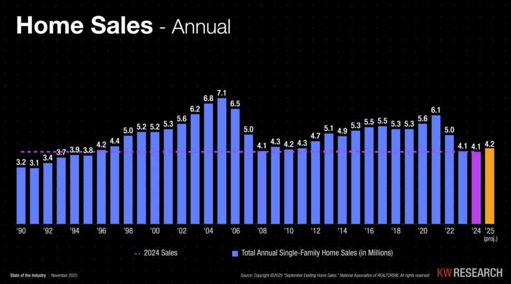 先看利率,根据CME FedWatch的利率概率图,12月10号再降息的概率还是高达66%,明年2月也有27.8%的概率,相当于年底到年初,大概率还要降1-2次。而根据Fannie Mae的预测,到2026年,30年房贷利率会降到5.9%。我们可以看到各家机构都对市场利率的预测,还是往下走的。差别无非是美联储降息够不够快、经济复苏能不能稳住。