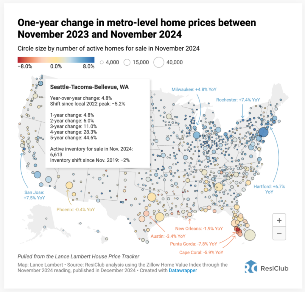 年度报告|2023-2024年大西雅图地区房价涨跌幅排名