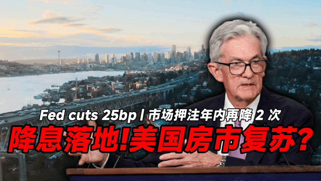 上个月,美联储终于进行了2025年的第一次降息!市场利率又来到了最近一年来的低点,我们有几个同事最近都去做了refinance,也有不少客户也开始活跃了起来,想在降息周期前拿下房子。 随着降息的进行,房地产看上去好像有救了,房价又要开始涨了。但!这是真的吗? 那本这期市场报告我们会讲三件事: 首先,降息后,全美房市现在是什么情况?明年的房价会怎么变化? 第二,西雅图本地市场现在是什么情况?今年剩下的几个月会怎么发展? 最后,我们还会给买家和卖家一些具体的建议! 📈 美国房贷利率 & 全国市场快照 首先我们看一下这次降息对市场的影响。9 月 17 号,美联储今年的第一次降息终于落地,下调了 25 个基点,基准利率降到了 4.00% 到 4.25% 之间。这也是 2025 年的第一次动作,但很可能不是最后一次。市场普遍预测年内还会有两次降息。 根据 CME FedWatch 的数据,10 月底再降一次的概率接近 95%,12 月再降一次的概率大概是 80%。所以年内“三连降”,几乎已经是板上钉钉了。 从最新数据来看,Freddie Mac 公布的数据显示,截至 10 月 2 日当周,30 年固定利率是 6.34%,15 年固定利率是 5.55%。比起上周还上涨一点点。 而且我们了解到有一些行动比较快的银行,房贷利率已经开始慢慢往下走了。在我们自己的客户中,30年固定利率,已经有人拿到 5.8% 或 5.9% ,如果是 15 年期,甚至可以做到 5.5% 左右。 那现在全美市场的是什么情况呢? 第一,价格没崩,但涨不动。Redfin 最新的数据显示,全国成交中位价是 39 万多 […]